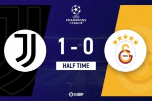 上半場傷停補(bǔ)時(shí)4分鐘,半場結(jié)束,尤文圖斯暫1-0加拉塔薩雷。