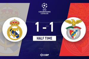 體育資訊2月26日訊 體育資訊2月26日訊 北京時間4:00,歐冠1/8決賽附加賽次回合皇家馬德里vs本菲卡,比賽在伯納烏球場打響!上半場,拉法·席爾瓦幫助本菲卡率先破門,僅2分鐘后瓊阿梅尼迅速還以顏色;居萊爾進球被判越位。半場結(jié)束,皇馬暫1-1本菲卡,總比分2-1暫時領(lǐng)先。