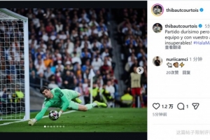 皇馬門(mén)將庫(kù)爾圖瓦社媒曬出撲救的照片,慶祝球隊(duì)晉級(jí),配文:“這是一場(chǎng)極其艱難的比賽,但只要我們團(tuán)結(jié)一致,加上你們的支持,我們就是不可戰(zhàn)勝的!”
