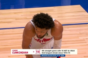 穆奇·布雷洛克在1994年曾連續(xù)5場貢獻(xiàn)至少10助2帽