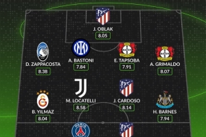 whoscored本輪歐冠最佳陣: