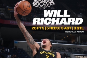 此役,勇士次輪56號(hào)秀威爾·理查德出戰(zhàn)29分35秒,投籃15中9,三分6中2,罰球1中1,得到21分5籃板6助攻3搶斷,得分生涯第二高(最高為30分)。