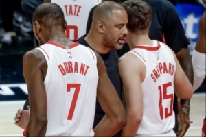 火箭(37-21):杜蘭特40分8板3助2斷、謝潑德20分3板4助2斷2帽、申京16分6板5助、史密斯13分1板1助、阿門(mén)9分5板3助、奧科吉6分3板1助、卡佩拉4分6板3助4帽、芬尼-史密斯3分1板1助、伊森2分8板3助2斷。