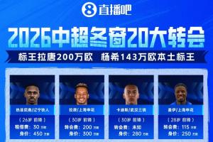 2026中超冬窗轉(zhuǎn)會TOP20【注:數(shù)據(jù)參考德國轉(zhuǎn)會市場網(wǎng),20大轉(zhuǎn)會綜合球員德轉(zhuǎn)身價(jià)、轉(zhuǎn)會費(fèi)以及體育資訊話題度,排名依照德轉(zhuǎn)身價(jià)從高至低】