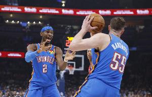 體育資訊2月28日訊 NBA常規(guī)賽,雷霆主場127-121加時(shí)險(xiǎn)勝掘金。