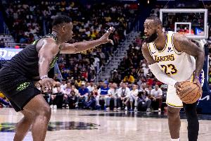 湖人目前36勝24負(fù),西部6位;鵜鶘19勝43負(fù),西部第13位。