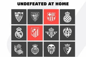 體育資訊1月15日訊 據(jù)西甲官方統(tǒng)計(jì),巴薩和馬競是本賽季僅有的兩支西甲主場不敗球隊(duì)。