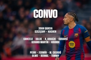 體育資訊3月3日訊 北京時間明天凌晨4點,巴薩將在國王杯半決賽次回合比賽中主場對陣馬競,首回合巴薩0-4落敗。巴薩公布了此役的球員名單,萊萬因眼眶受傷缺席。