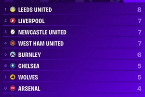 Squawka統(tǒng)計(jì)了本賽季各隊(duì)英超比賽90分鐘或以后的丟球數(shù)量,并列出榜單,利茲聯(lián)8球最多,利物浦7球并列次席。