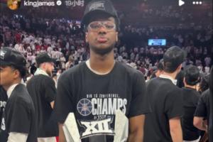 體育資訊03月04日訊 湖人球星詹姆斯轉(zhuǎn)發(fā)了自己的小兒子布萊斯奪得Big 12聯(lián)賽常規(guī)賽冠軍的捧杯圖片。