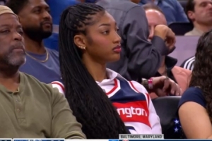 WNBA球星安吉爾·里斯被拍到在場(chǎng)邊觀戰(zhàn),此役里斯的弟弟朱利安·里斯代表奇才首發(fā)出戰(zhàn),而里斯的緋聞男友溫德爾·卡特因傷缺陣。