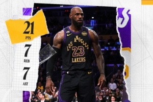 賽后湖人官方發(fā)布詹姆斯和東契奇本場數(shù)據(jù)海報,詹姆斯砍下21分7籃板7助攻,東契奇砍下27分10籃板7助攻。