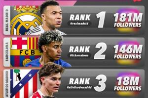 西班牙球隊(duì)INS粉絲數(shù)排名