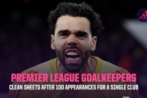 在英超門將代表單一俱樂(lè)部出戰(zhàn)100場(chǎng)比賽的零封統(tǒng)計(jì)中,拉亞與范德薩并列第六,切赫代表切爾西出戰(zhàn)100場(chǎng)后零封59場(chǎng)排名第一。