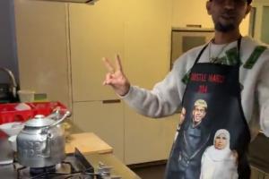 值得一提的是,Hustle Hard(亞馬爾父親)穿著一件印有金球獎(jiǎng)?lì)C獎(jiǎng)禮圖片的圍裙出現(xiàn),圖片上是亞馬爾和他的母親。每體表示這是一個(gè)有趣的舉動(dòng),但也展示了莫尼爾與他家庭的團(tuán)結(jié)。
