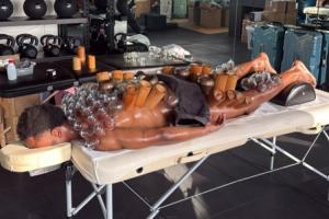 照片中的奧蓬達正在進行拔罐,他從頸部到小腿全部安上了各種材質(zhì)的罐子。意大利媒體介紹稱,拔罐是一種可以緩解疼痛和放松肌肉的皮膚療法。