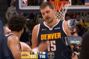 苦苦支撐!約基奇持球強攻 轉(zhuǎn)身打中并造東契奇犯規(guī)加罰也有