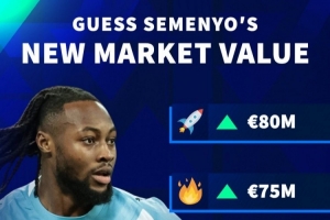 體育資訊3月6日訊 德國轉(zhuǎn)會(huì)市場預(yù)熱曼城前鋒塞梅尼奧的最新身價(jià),他的身價(jià)最高可能達(dá)到8000萬歐,最低6000萬歐。