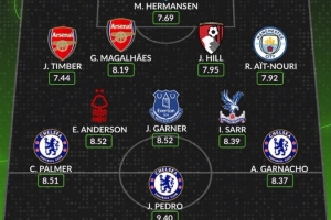體育資訊3月6日訊 數(shù)據(jù)網(wǎng)站W(wǎng)hoscored評選出本輪英超最佳陣容,其中切爾西前場3人入選,以下為具體陣容: