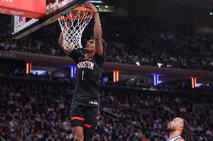 體育資訊3月8日訊 火箭球員阿門在本隊(duì)擊敗開拓者的賽后接受媒體采訪。