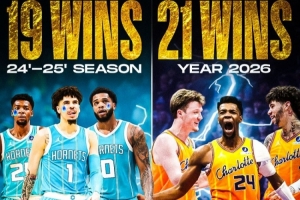 上賽季黃蜂19勝63負(fù);2026年至今他們21勝10負(fù)。
