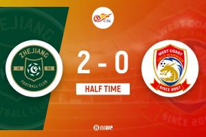 上半場補(bǔ)時(shí)3分鐘。半場戰(zhàn)罷,浙江隊(duì)2-0青島西海岸。