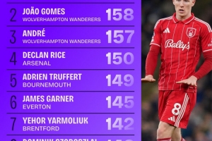 體育資訊3月9日訊 作為諾丁漢森林的中場(chǎng)悍將,埃利奧特·安德森在奪回球權(quán)方面有著非常出色的表現(xiàn)。本賽季,安德森在英超中243次奪回球權(quán),處在遙遙領(lǐng)先的位置,狼隊(duì)的若昂·戈麥斯以158次位居次席。