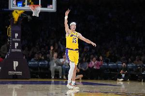 3月9日,湖人在主場以110比97擊敗了尼克斯隊。本場比賽,詹姆斯因傷缺席,雖然湖人受到了一定的不利影響,但是東契奇與里夫斯接管了比賽,他們合力砍下了60分的高分。本賽季,當(dāng)詹姆斯缺陣,東契奇與里夫斯都可以出場時,湖人戰(zhàn)績是9勝2負。