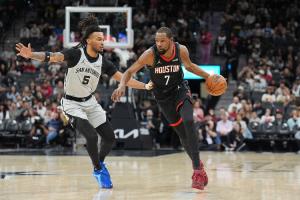 體育資訊03月09日訊 NBA常規(guī)賽,火箭在客場(chǎng)以120-145慘敗馬刺。