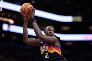 此役太陽10號(hào)秀馬盧阿奇表現(xiàn)積極,出場(chǎng)20分鐘4投2中,拿到4分9籃板2蓋帽,正負(fù)值+10。