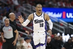 今天結(jié)束的NBA常規(guī)賽中,國(guó)王主場(chǎng)126-110戰(zhàn)勝公牛。此役,威斯布魯克出戰(zhàn)34分43秒,17中7,其中三分5中3,罰球6中6,得到23分11籃板12助攻1搶斷,沒有失誤,正負(fù)值+10。