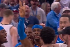 GIF-掘金最后一攻無果,亞歷山大朝著全場單手比2(自己的號碼)