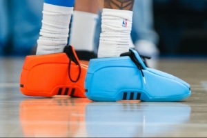今天缺席比賽的杰倫·威廉姆斯在賽前也進行了常規(guī)訓(xùn)練。而他上腳了一雙Adidas Crazy 2 “OKC” PE。球鞋采用了雷霆球衣配色的藍橙鴛鴦配色。