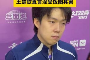 體育資訊03月11日訊 WTT重慶冠軍賽男單1/16決賽,王楚欽3-0戰(zhàn)勝對手晉級16強(qiáng),賽后接受采訪時(shí),王楚欽被問飯圈相關(guān)的話題。