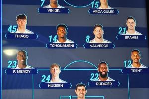 體育資訊03月12日訊 皇馬官方公布了對(duì)陣曼城的首發(fā),皇馬tv給出的陣型是442,維尼修斯、居萊爾搭檔鋒線。