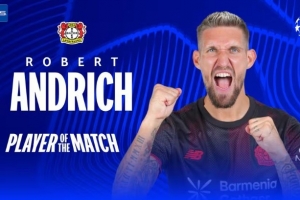 體育資訊3月12日訊 歐冠1/8決賽首回合,勒沃庫森主場1-1戰(zhàn)平阿森納,安德里希首發(fā)出戰(zhàn),賽后被評為全場最佳。