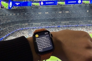 記者Jose Padilla社媒曬出照片,由于伯納烏球場(chǎng)聲浪太高,他的智能手表報(bào)警。