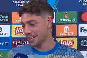 賽后發(fā)生了有趣的一幕,記者對(duì)巴爾韋德說(shuō)道:我必須給你(展示)這個(gè)虛擬的東西,因?yàn)槲覜](méi)有金球獎(jiǎng)在這,(向鏡頭展示手機(jī)屏幕金球獎(jiǎng)圖),這是你的。
