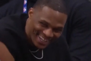 GIF-三分飆垃圾話 引威少大笑