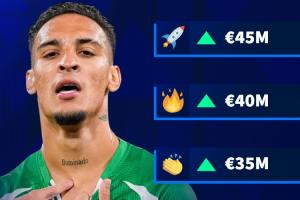 體育資訊03月12日訊 德轉(zhuǎn)將在3月16日更新西甲球員身價(jià),目前已經(jīng)放出了貝蒂斯前鋒安東尼的身價(jià)變化預(yù)熱。