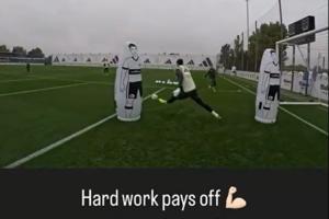 賽后庫爾圖瓦在社媒上分享了平時訓(xùn)練的視頻,表示:努力工作終有回報,并@皇馬門將教練路易斯·洛佩斯。