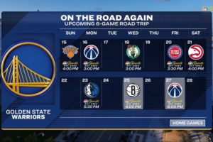 轉(zhuǎn)播方曬出本場過后勇士的賽程,他們將開啟六連客,對手分別為尼克斯、奇才、凱爾特人、活塞、老鷹和獨行俠。