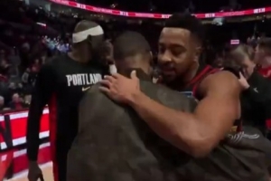 賽后,此役重回波特蘭的麥科勒姆與老隊(duì)友利拉德相擁致意。