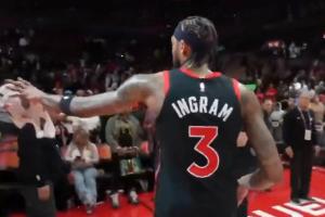 英格拉姆將自己的毛巾扔給美國(guó)女說(shuō)唱歌手GloRilla