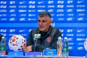 3月14日下午,成都蓉城隊(duì)主教練約翰·阿洛伊西和球員胡荷韜出席了賽前新聞發(fā)布會(huì)。