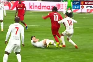 比賽第25分鐘,嚴(yán)鼎皓鏟球犯規(guī),馬寧出示黃牌,鐵人半場已經(jīng)有三人染黃,分別是熱菲尼奧、費(fèi)利佩、嚴(yán)鼎皓。