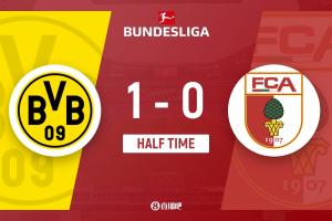 體育資訊3月14日訊 北京時(shí)間3月14日22:30,德甲第26輪,多特蒙德在伊杜納信號(hào)公園球場(chǎng)迎戰(zhàn)奧格斯堡。上半場(chǎng),阿德耶米接拜爾傳中搶點(diǎn)破門,隨后里貝羅錯(cuò)失單刀良機(jī),拜爾射門中柱。半場(chǎng)戰(zhàn)罷,多特蒙德暫時(shí)以1-0領(lǐng)先奧格斯堡。