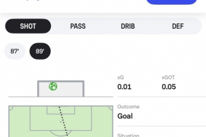 數(shù)據(jù)網(wǎng)站Sofascore曬出居萊爾射門路線圖,并調(diào)侃道:“我們可能需要重新設(shè)計(jì)球員的射門路線圖了,因?yàn)榘雸?chǎng)圖已經(jīng)放不下這腳吊射了?!?/p>