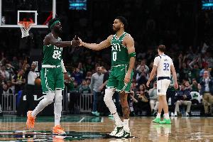 全場比賽奎塔出戰(zhàn)31分13秒,13投11中、罰球3中2,拿下24分10籃板3助攻1搶斷2蓋帽,有2次失誤,正負值+14。塔圖姆首發(fā)出戰(zhàn)32分鐘,投籃19中8,三分球9中2,罰球2中2,拿到20分14籃板7助攻2搶斷的全面數(shù)據(jù),正負值+18。