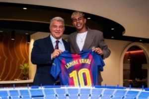 亞馬爾在社交媒體上曬出與拉波爾塔的合照,對(duì)此拉波爾塔說道:“亞馬爾發(fā)的照片讓我深受感動(dòng),我非常感謝他?!?/p>